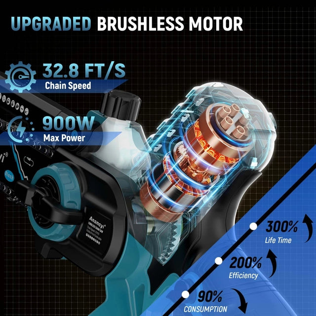 2x 4.0Ah Batteries and Charger, 900w, 32.8ft/s Chain Speed, Automatic Oil System, Telescopic with Motor Head 180° Swiveling, Adjustable Telescopic Pole.
