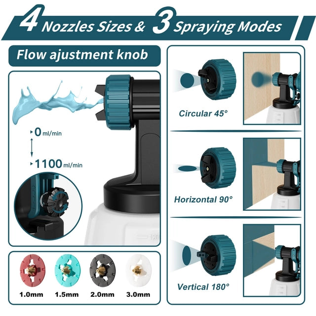 Paint Sprayer, 700W HVLP Electric Spray Gun with Cleaning & Blowing Joints