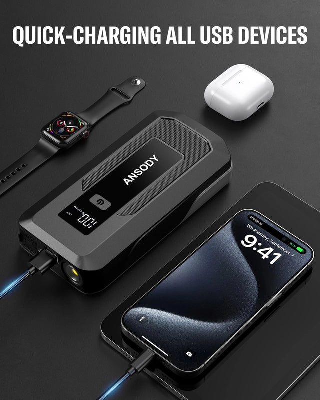 Ansody Car Battery Booster, Jump Starter Power Pack, 3000amp for 12v Vehicles