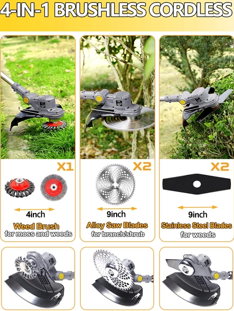 Brushless Garden Strimmer with 4x Metal Blades in Grey.